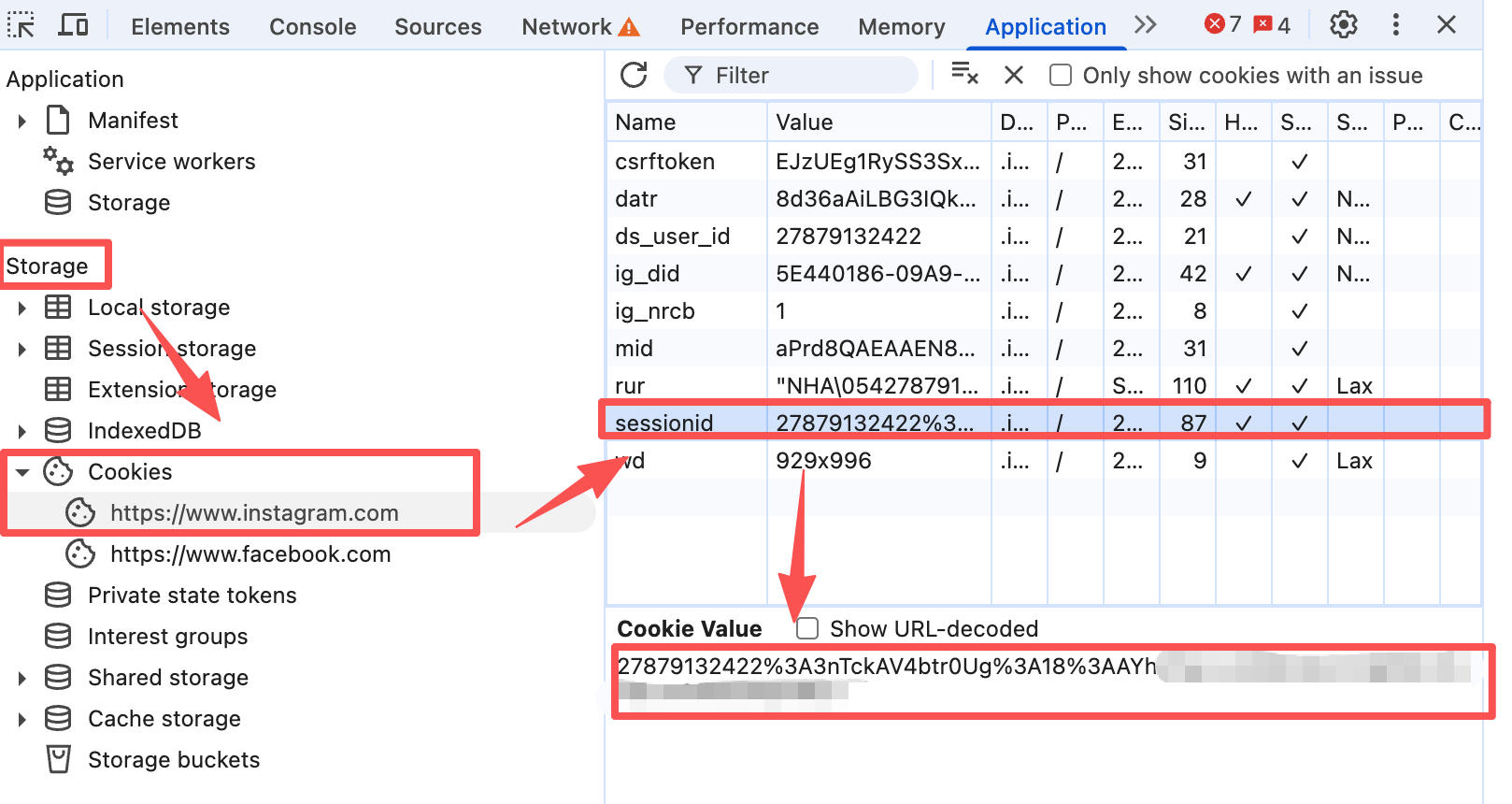 1. コンピュータでChromeブラウザを開きます 2. Instagramにアクセスしてログインします 3. ページ上で右クリックし、「検証」を選択します(または「F12」キーを直接押します) 4. (以下の図のように)「アプリケーション」タブを選択します 5. 左側で「Cookie」を選択します 6. 「sessionid」の値を見つけ、コピーします 7. 当サイトに戻り、「sessionid」の値を貼り付け、Instagramの投稿リンクを入力します。ダウンロードをクリックしてください 8、詳細については以下「よくある質問」をご確認ください 免責事項:あなたのCookie(sessionid)はあなたのデバイスにのみ保存されます